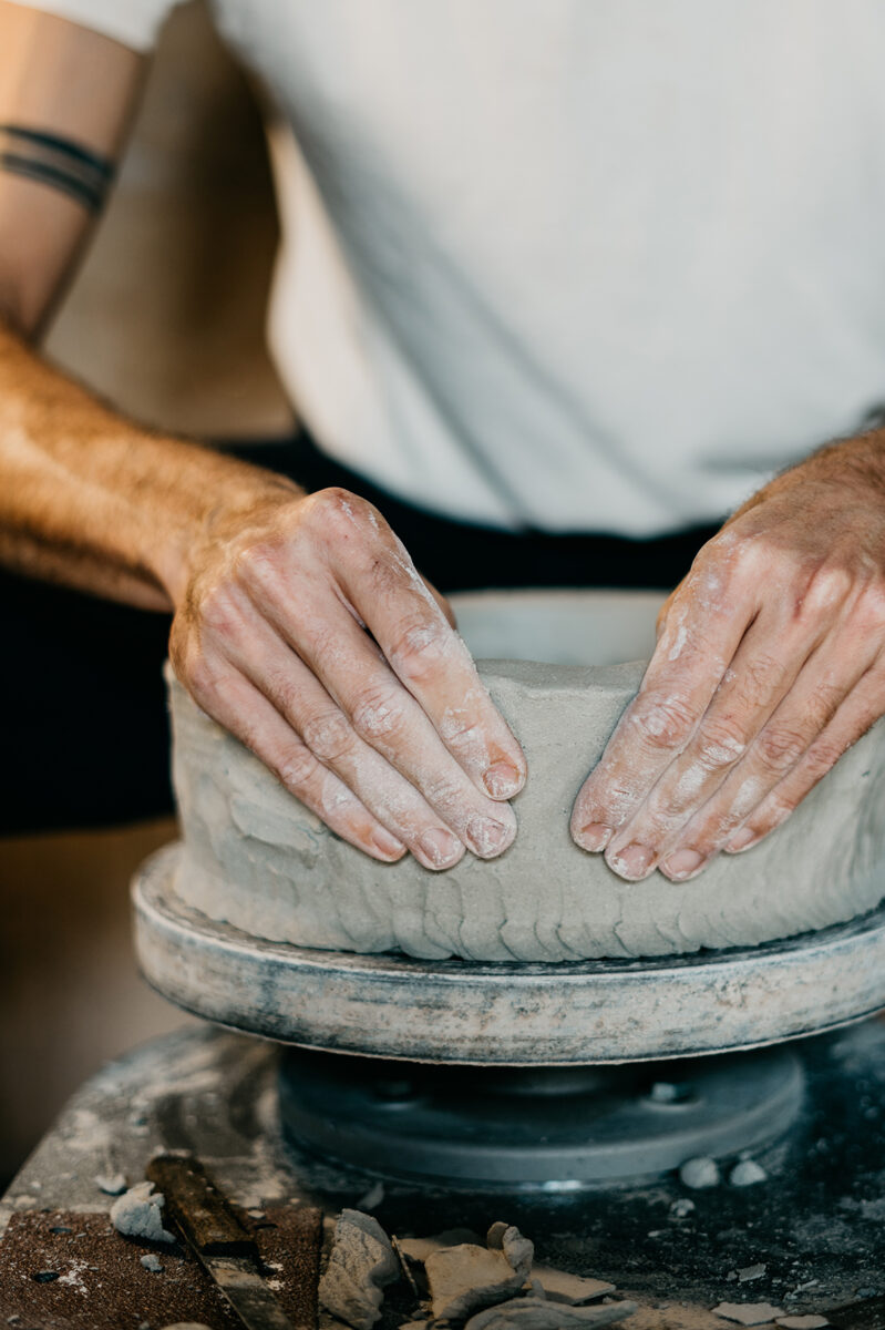 Cada pieza de cerámica de Jaume se elabora cuidadosamente en su taller cerca de Ses Salines y luego se calienta en un horno a más de 1000 grados. Cuando hay mucho trabajo, su pequeña sala está llena de miles de piezas cuidadosamente colocadas para su secado y pulido. Cuando el trabajo se aligera, Jaume disfruta cuidando sus ovejas y preservando el paisaje local con su pareja, la artista textil Adriana Meunié. “Todas las reglas están en la cabeza. Me tomo cada día como viene, compartiendo mi pasión con Adriana pero, en última instancia, haciendo mi propio viaje también”, dice, apagando su torno de alfarero y reflexionando sobre su trabajo. Otra creación destinada a causar una impresión duradera.