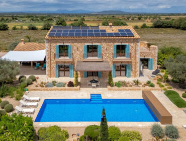 Finca de piedra natural entre Santanyí y Ses Salines con piscina de 48 m², sistema de energía solar y elegancia atemporal.