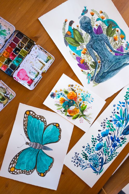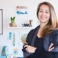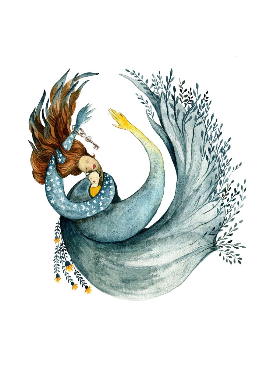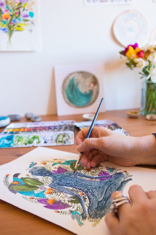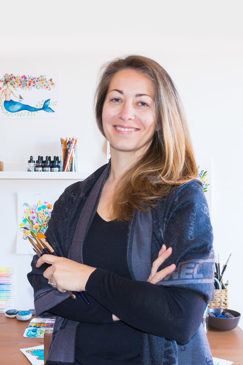 Italiana de nacimiento, griega de corazón y residente en Mallorca por casualidad, Barbara Lovrich empezó a dibujar de niña con un bolígrafo, en blanco y negro. Cuando tenía veintipocos años, un amigo metió una caja de acuarelas en su bolso, y de repente sus garabatos se llenaron de color e ideas. “Con las acuarelas, es difícil mantener el control y el azar es parte del proceso”. Tras veinte años de práctica, su mano es firme y su técnica refinada, pero ella continúa explorando el proceso creativo que trasciende al mero hecho de pintar, con ilustraciones sobre la maternidad, la meditación y el crecimiento espiritual.
