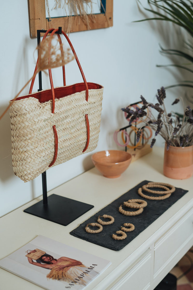 SantaPalma trabaja con un pequeño taller situado en Inca, aunque ha tenido que combinarlo con pequeños talleres del sur de España para poder crecer como marca, manteniendo una producción reducida donde cada bolso sea único y diferente; con alma. En el proceso de fabricación surge toda su formación de arquitecta, pues se asemeja al proceso de construcción de un edificio donde se precisa disciplina y una base técnica, y donde a nivel de diseño le aporta un estilo personal que resulta muy conceptual y estructural, transformando un producto tradicional en un diseño contemporáneo muy práctico. Elisabeth, con la delicadeza que la caracteriza, recuerda, “Desde los 9 años supe que quería ser arquitecta. Necesitaba poder entender el mundo que me rodeaba y su estructura, pero no fue hasta llegar aquí, un día de primavera desde Barcelona, que acompañé a una amiga a trabajar al puerto de Pollença. De repente, estaba en lo que sentí que era un paraíso. Me encontraba debajo de unos pinos, sentada en la arena y observando el mar, rodeado de montañas, dándole una calma inusual, en estado zen. Luego, por la tarde, conocí a Joan, mi actual marido, así que fue un día que siempre recordaré. Desde ese día, mi vida empezó a coger un nuevo rumbo. Fue el principio del equilibrio hacia una vida más humana, en armonía con la naturaleza y nuestras raíces”.