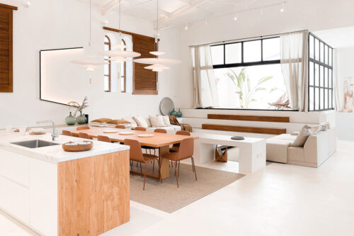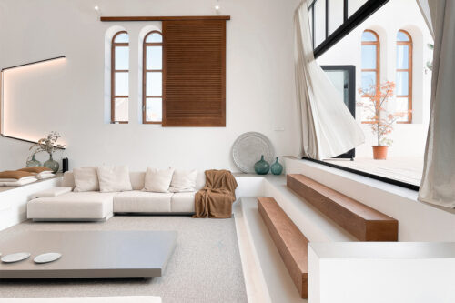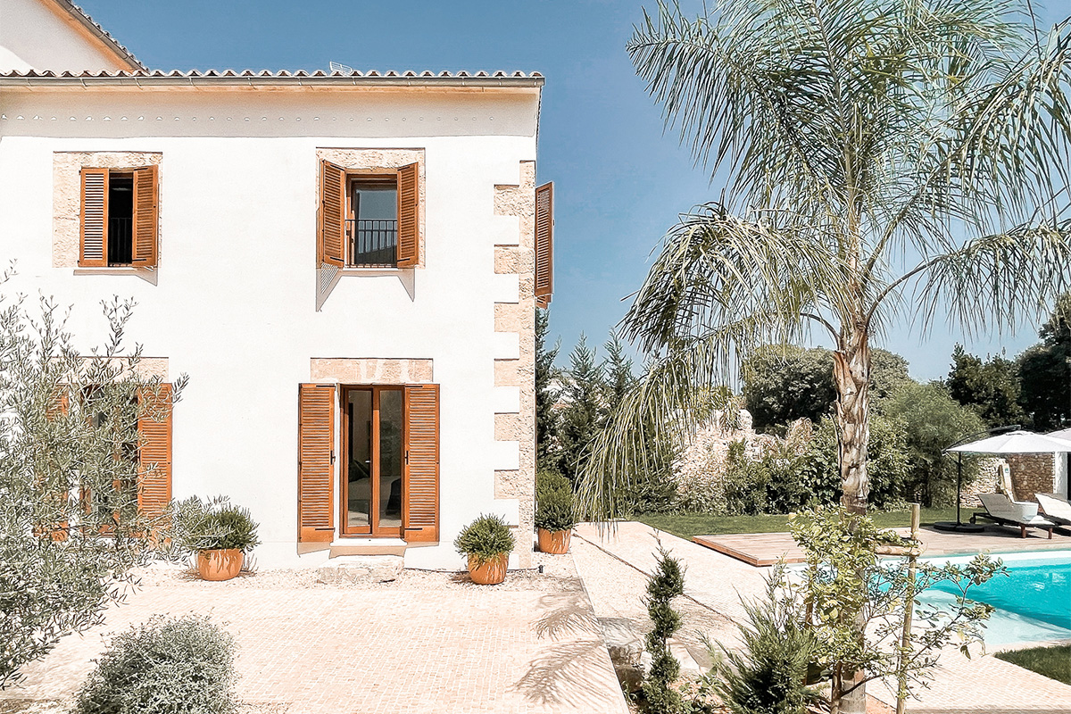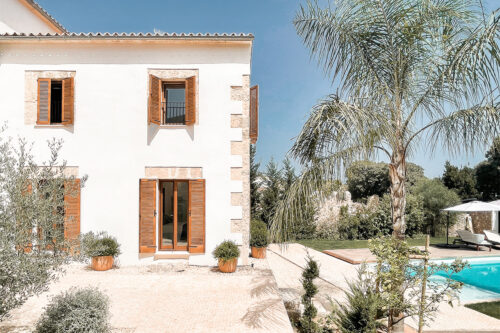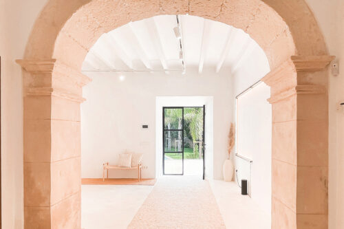 “Cuando entramos por primera vez en Can Garrover, nos fascinó el magnífico espacio. Llevaba años abandonado, por lo que se había deteriorado mucho”, dicen Alex y Kika, de Bonba Studio, con sede entre Palma y Barcelona. Tras enamorarse del deteriorado teatro de Sencelles, los socios trabajaron en su transformación. A partir de dos entradas diferentes, restauraron el exterior y las puertas tradicionales de madera, recurriendo al trabajo de carpinteros y ferreteros locales. También se reconstruyeron los arcos, dando un soplo de aire fresco al interior, antaño oscuro y decaído. Lo más destacable, sin embargo, es la altura de los techos, que ejercen un leve guiño al pasado teatral de la propiedad. Se priorizó el espacio, junto con sofás de color guijarro y muebles y alfombras amplias. La mesa de comedor de madera de Andreu World aporta una agradable paleta de colores terrosos, que combina bien con las contraventanas y los escalones de madera, ambos orientados a un acogedor patio. Por otro lado, la propiedad cuenta con una piscina, una casa de piedra para invitados y un jardín con césped. Una ovación merecida en todos los sentidos.