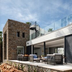 Es difícil no enamorarse del proyecto Port Verd de Medina Architecture. Su ubicación, a sólo 5 metros del mar, no sólo ofrece unas vistas inmejorables, sino también la relajante banda sonora del océano. Para asegurar la privacidad y garantizar una paz total, los arquitectos crearon un patio central protegi- do a ambos lados. Este patio conecta con la piscina, la zona de estar, la cocina y los dormitorios. El diseño fluido consigue crear una atmósfera de relajación absoluta, donde cada zona goza de una panorámica excepcional del mar.