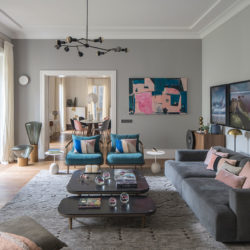 Algunos proyectos de diseño se basan en una gama limitada de marcas para garantizar una continuidad estilística, que crea una cierta cohesión estética. Otros proyectos son una gloriosa mezcla de diseños y marcas dispares, pero con un hilo conceptual invisible que aúna todo, de modo que el conjunto resulta fabuloso y totalmente único. A la segunda categoría, pertenece este proyecto, realizado por la puntera empresa de interiorismo Organic Studio, que lidera el gran talento de Andrea Pussin.