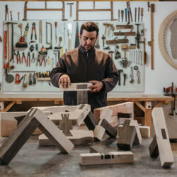 Hay algo cautivador en los muebles de madera hechos a mano, y más aún cuando se presentan sin ningún componente metálico. El carpintero Unai Echenique, propietario de Casabe, disfruta con el ejercicio mental que supone construir piezas con esta milenaria técnica japonesa. Nos reunimos con él en su escondido taller y nos muestra su lugar de trabajo, donde se exponen diferentes estilos de uniones de madera. Parecen rompecabezas por resolver.