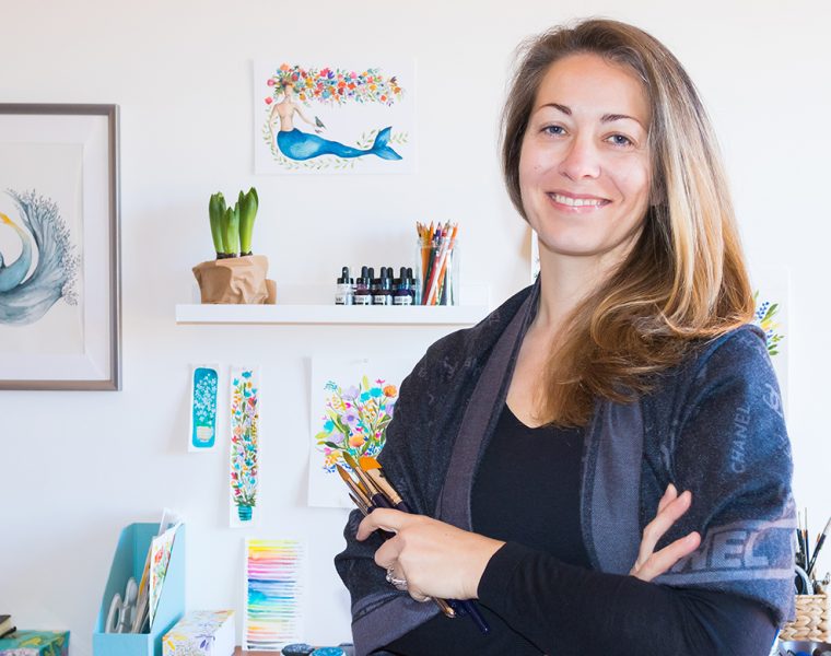Las ilustraciones realizadas en acuarela de Barbara Lovrich se inspiran en el arte de la meditación y la maternidad, resultando en alegres obras coloridas.