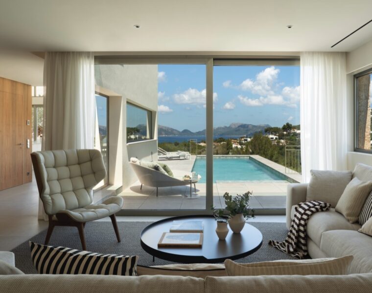 Una casa vanguardista acariciada por el mar abrazando la naturaleza, evocando la esencia mallorquina con espacios luminosos.