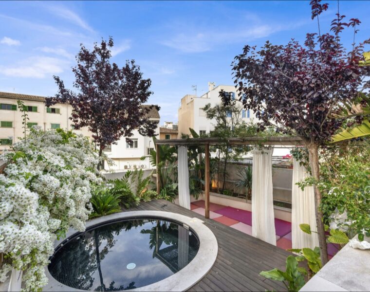 Un exclusivo piso de diseño en el corazón de Palma, con terraza privada, elegantes interiores y acceso a una piscina comunitaria climatizada.