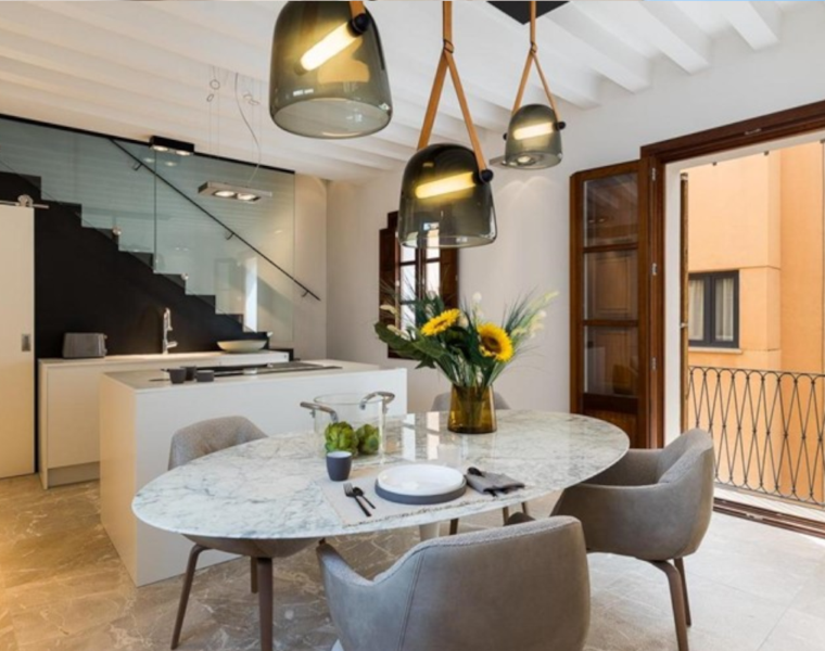 Rare designer loft for sale in Palma’s old town with a unique living area, original arches, and tranquil patio.