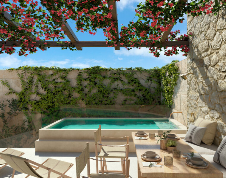 Esta elegante casa de pueblo en el casco antiguo de Pollensa combina el encanto tradicional mallorquín con el lujo moderno, con una terraza en la azotea, piscina privada y espacios serenos.