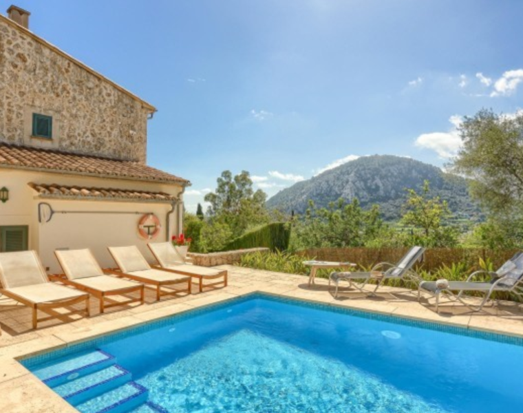 Una preciosa casa de pueblo restaurada en Sóller, mezcla de patrimonio y lujo contemporáneo, que ofrece vistas a la montaña y un sereno patio con piscina.