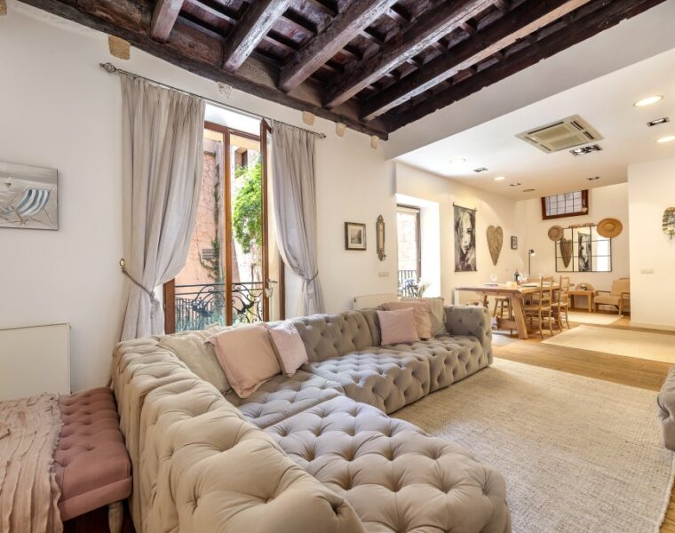 Dúplex con carácter en el Casco Antiguo de Palma, con una refinada mezcla de belleza histórica y confort cotidiano.