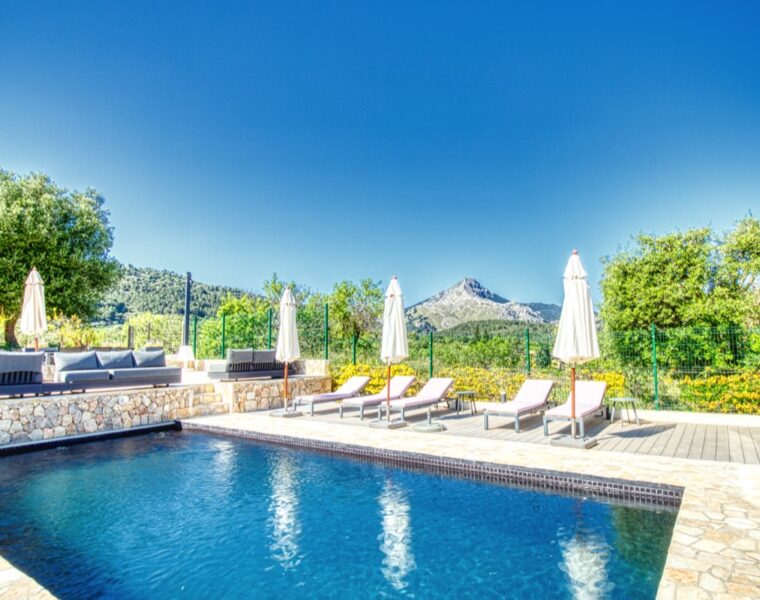 Esta villa de 4 dormitorios en venta en Es Capdella viene con vistas espectaculares de las montañas de Galatzo y con su propia parcela de terreno.