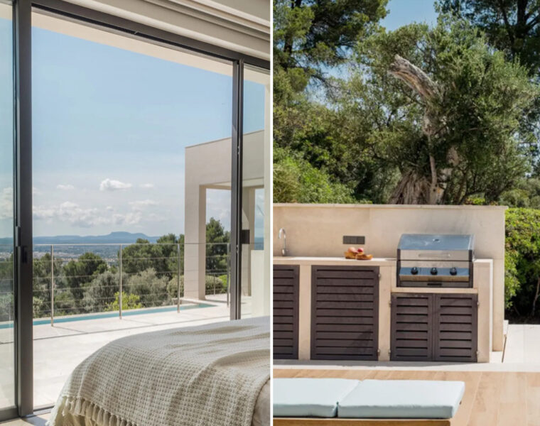 Located in Son Vida, this expansive and light-filled villa offers panoramic mountain and sea views with smart home features.