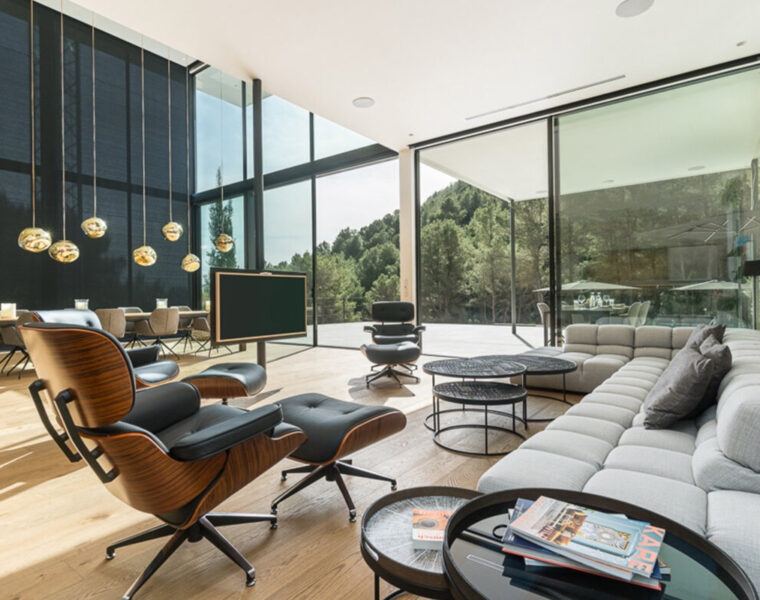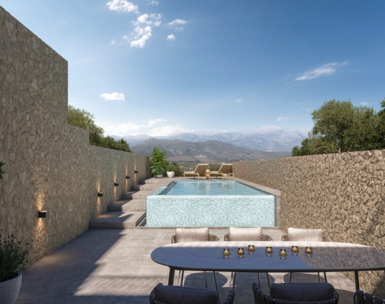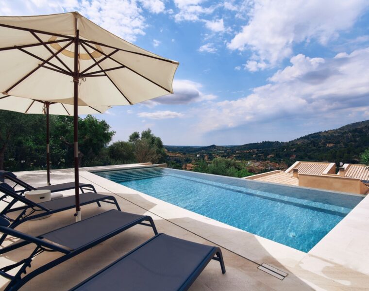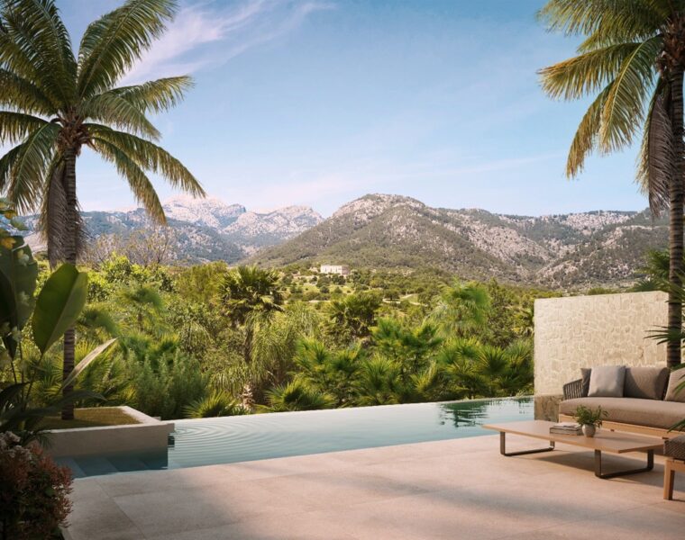 Esta nueva villa sostenible de 600m2 situada en el punto más alto de Alaró, con el Parque Nacional detrás, cumple todos los requisitos para ser la perfecta casa mediterránea de lujo.