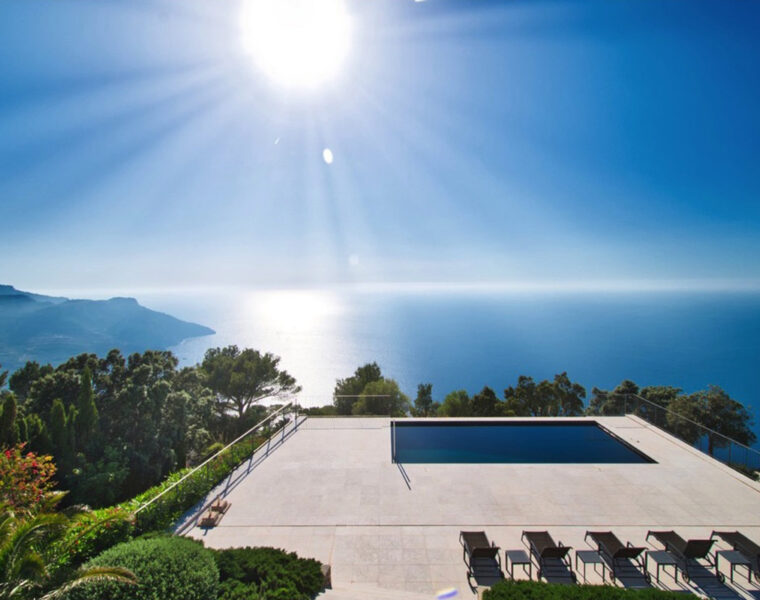 Esta elegante villa de estilo mediterráneo ofrece unas incomparables vistas en primera línea sobre el hermoso mar Mediterráneo.