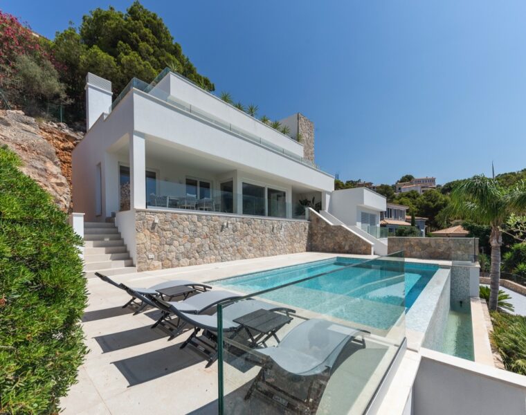 Esta increíble villa de 6 dormitorios en venta en Costa d’en Blanes tiene vistas directas al mar y una piscina de agua salada de 15 metros.