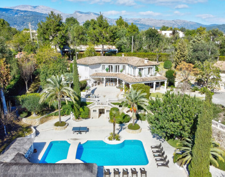 Esta villa privada y tranquila en Esporles, que consta de 513 m2 con 4 dormitorios y 5 baños, una casa de invitados, garaje doble y dos piscinas, está situada en la idílica urbanización Ses Rotgetes de Canet. La villa ofrece un entorno tranquilo con servicios como tiendas, restaurantes y supermercados, y está a sólo 10 minutos en coche del centro de Palma.