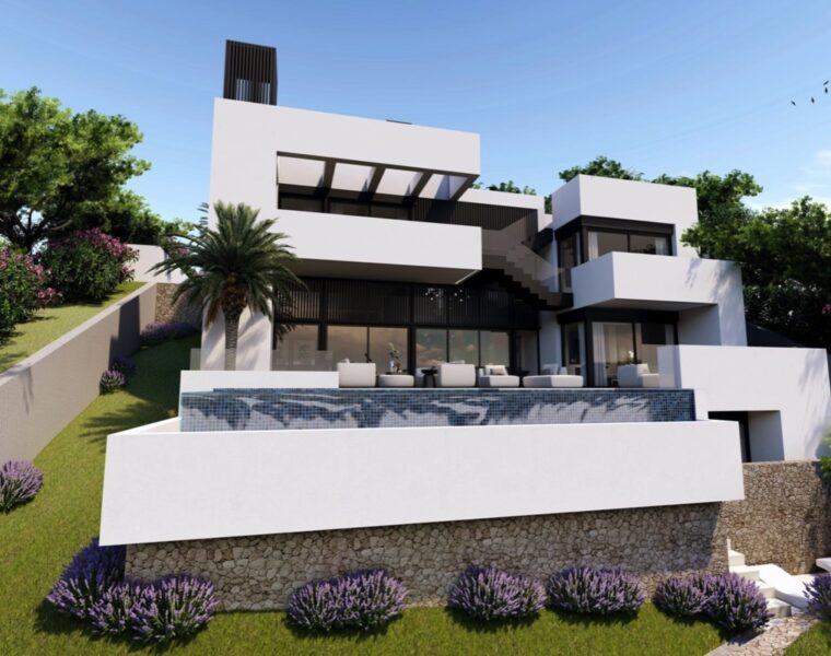 Este impresionante proyecto en Son Vida consiste en una impresionante casa de 4 plantas que tiene todo lo que se puede pedir, desde un gimnasio, piscina cubierta y al aire libre, así como una sauna, un cine en casa y una bodega.