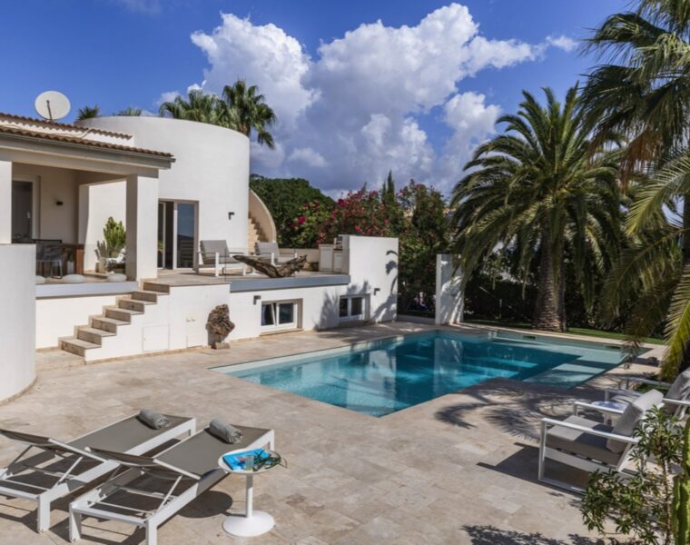 Esta elegante villa en Santa Ponsa ofrece espectaculares vistas al mar, lujosos interiores y una ubicación tranquila pero privilegiada – un hallazgo raro en Mallorca.