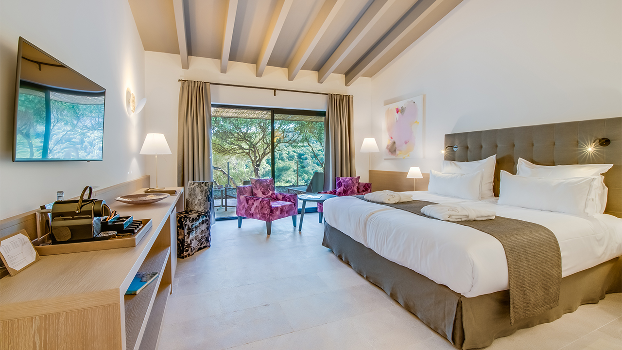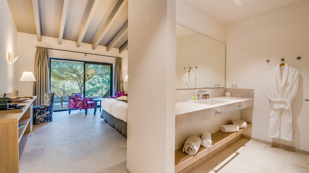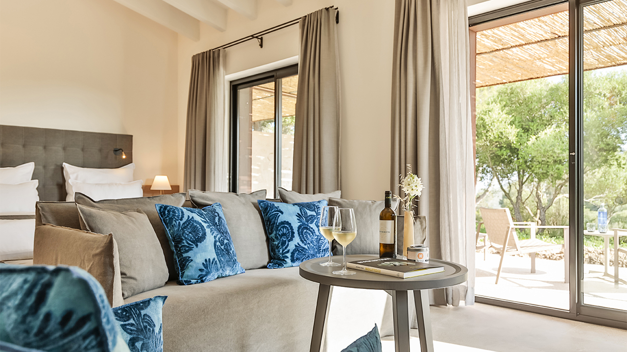 No es ninguna exageración decir que en el Carrossa Hotel Spa Villas se está en la gloria. Y no es solo por su maravillosa ubicación, en un alto de las siempre pintorescas colinas de Llevant, con impresionantes vistas al escénico campo mallorquín. No es solo por sus 350 hectáreas de terreno prístino y jardines, moteados por olivos centenarios, almendros y naranjos, donde la cálida brisa difunde el perfume de la lavanda, la adelfa y el romero.