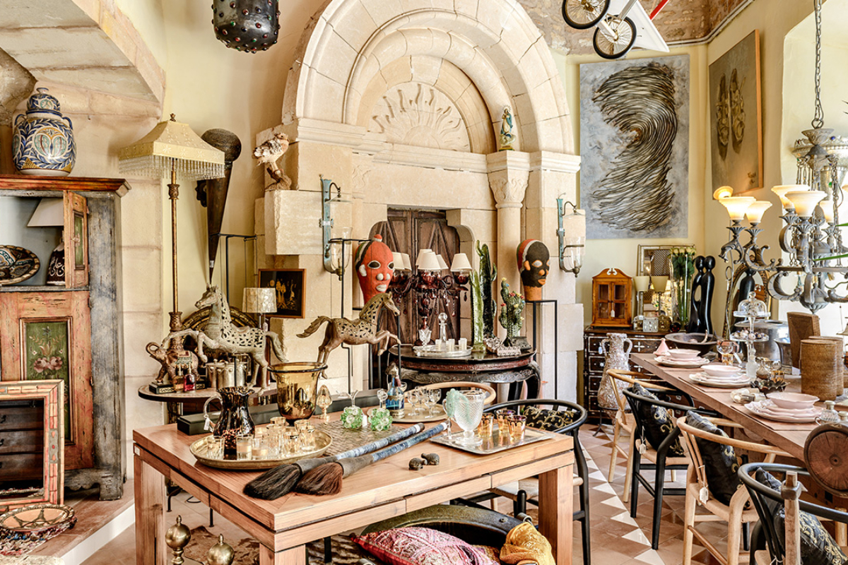 En 1975 , el padre de la familia Barceló comenzó a coleccionar arte, como complemento a su actividad laboral principal, la fontanería. “Ayudaba a los artistas residentes en la comarca y, a cambio de ese trabajo, recibía obras de arte”, dice su hijo Mateo, hoy a cargo del negocio. Ése fue el origen de las dos grandes tiendas de Santanyí. Mateo comenzó a trabajar allí cuando solo tenía trece años. Más tarde, padre e hijo prescindieron de la fontanería para dedicarse totalmente a la venta de objetos de decoración, arte y mobiliario.