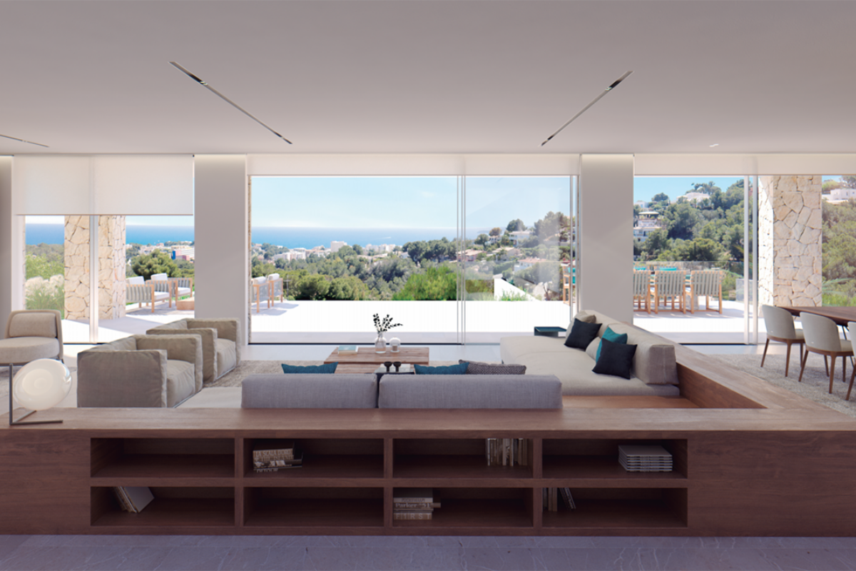 Preciosa villa de 3 dormitorios con vistas al mar en venta en Costa d’en Blanes con apartamento de invitados y piscina con vistas a la montaña y al mar.