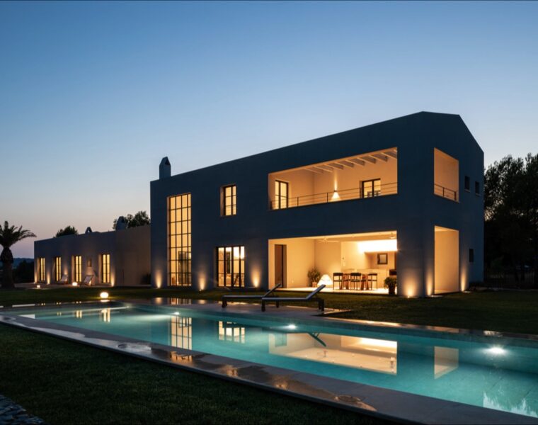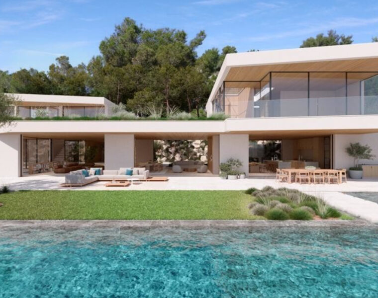 Esta impresionante villa en Sol de Mallorca combina lujo y diseño contemporáneo, con amplias zonas de estar, una gran piscina y vistas parciales al mar.
