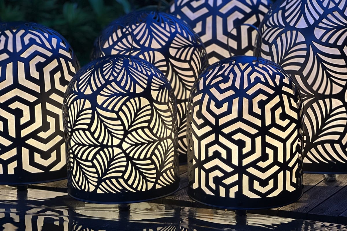 Desde cojines resistentes a la intemperie hasta lámparas de exquisito diseño, sus creaciones reflejan los diferentes patrones y formas que ha descubierto en sus viajes. Las piezas de mobiliario son como arte contemporáneo, a menudo con elementos tribales, y están fabricadas con materiales como madera, metal, cuero y latón, evitando la madera contrachapada o el plástico.