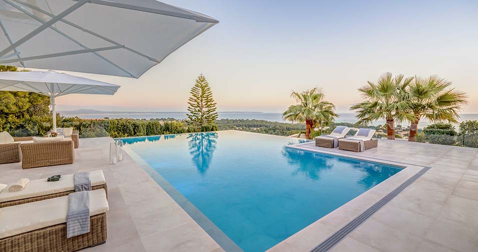 Sin duda habrás visto algunas fotos en las que aparecen villas situadas sobre acantilados que se fusionan perfectamente con el paisaje circundante, elegantes salones diáfanos que ofrecen vistas panorámicas al Mediterráneo, jardines perfumados con naranjos e higos, y piscinas rodeadas por piedra natural que conforman un verdadero remanso de paz.