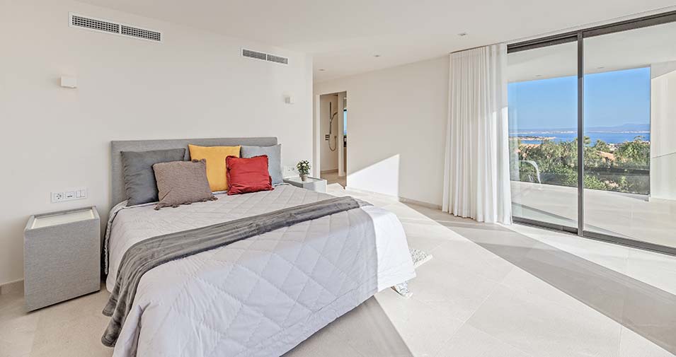 Vanguardista villa de diseño con piscina, vistas al mar, despacho y cuarto de servicio a la venta en Son Vida.