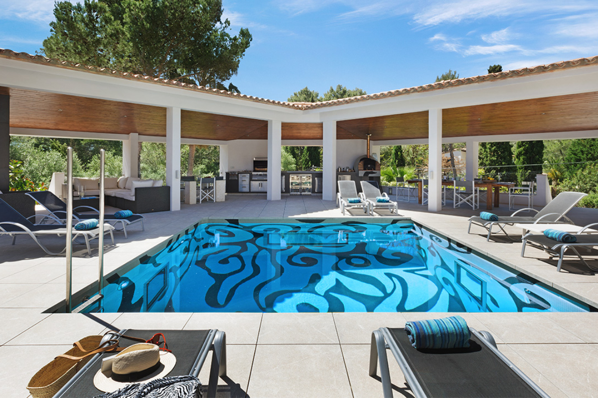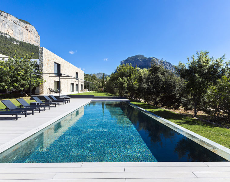 Esta impresionante villa cerca de Pollensa ofrece vistas a la montaña, lujosos espacios habitables y una tranquila ubicación en el campo, perfecta para vivir todo el año.