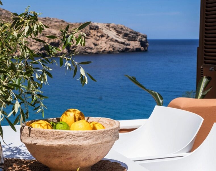 Preciosa casa con vistas al mar, cuatro terrazas y un nivel privado para invitados en la tranquila Cala Sant Vicente.