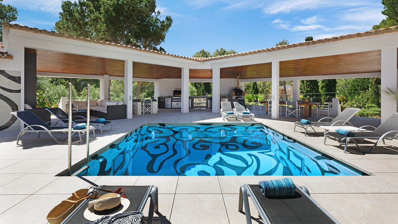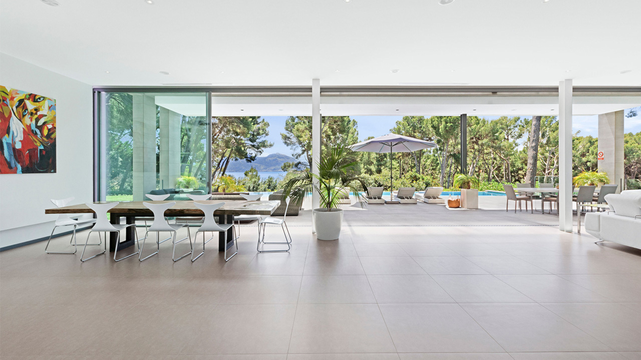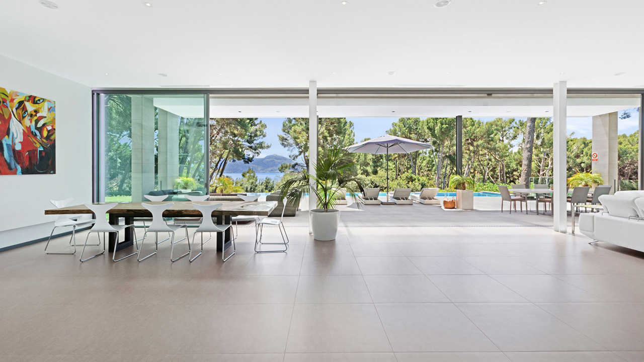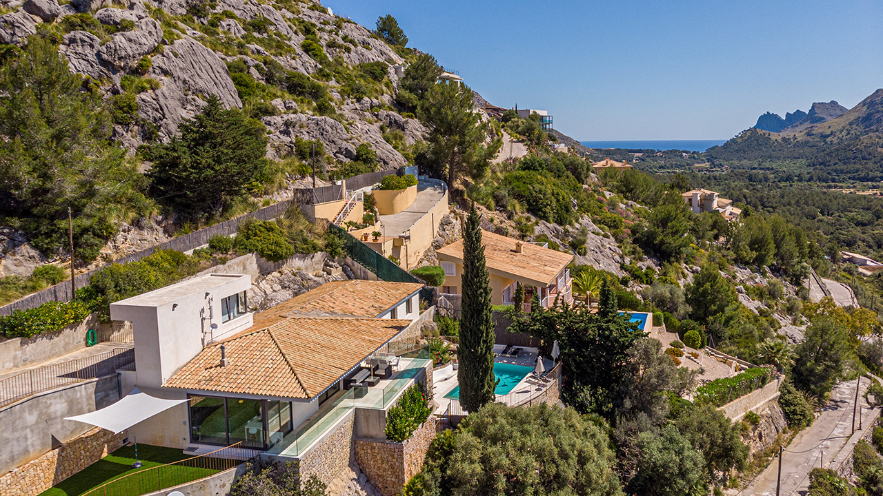 Esta impresionante villa cerca de Pollensa ofrece vistas a la montaña, lujosos espacios habitables y una tranquila ubicación en el campo, perfecta para vivir todo el año.