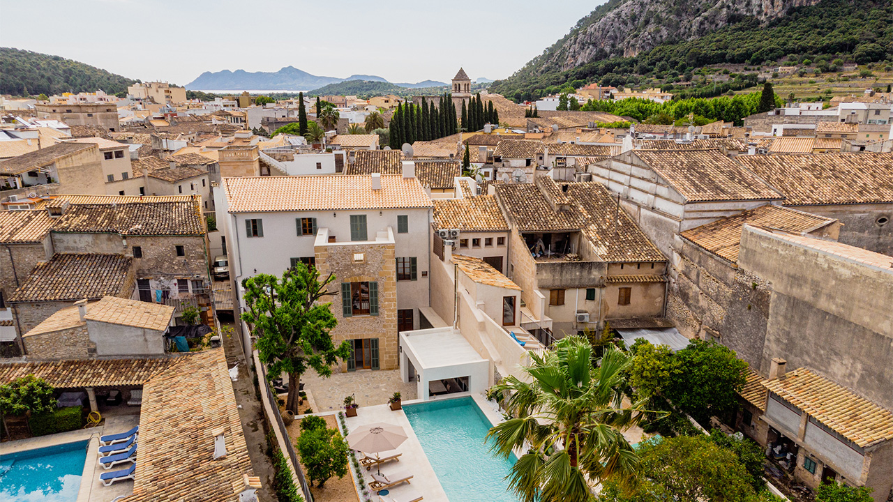 Una cautivadora finca en Pollensa, con exuberantes jardines, una piscina y una sauna al aire libre, donde el patrimonio mallorquín se encuentra con el lujo moderno.