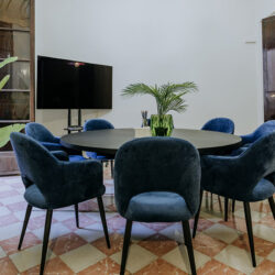 Para que todos los elementos de la red de contactos se unan, la familia Weidl combina tres cosas: una comunidad de ejecutivos, espacios empresariales físicos compartidos y un sistema de IA (para emparejar posibles colaboraciones). Con estos tres pilares, NXT Boardroom crea un entorno en el que los miembros pueden conocer a otras personas con ideas afines. “En la mayoría de los lugares de networking, nunca sabes qué te vas a encontrar y a veces no sirve para nada. Nosotros somos para la gente que quiere hacer buenos negocios, dice Maximilian. “¿Son como conexiones impulsadas por el propósito…?”, decimos. El trío está medio de acuerdo, pero prefiere utilizar la palabra “más inteligente”. “Profundizamos porque evaluamos tu perfil para ver si encajas bien”, dice Valentín, “usar la IA es una forma de hacerlo, pero en su mayor parte, averiguamos lo que quieres de la comunidad; es inteligente porque funciona en ambos sentidos. Cómo ayudas a otra persona y cómo te ayudan a ti”. Tras haber creado con éxito NXT Boardroom en Múnich y Hamburgo, los Weidl están encantados de dar la bienvenida a nuevos miembros a su espacio insignia en Palma. Situado en la prestigiosa calle de Sant Jaume, el palacio del siglo XVI es un centro ideal en la ciudad para conectar con otros altos ejecutivos y empresarios. Como todas las sedes de NXT Boardroom, tiene un ambiente cálido y acogedor. Hay varias salas de reuniones, una cocina, una zona de estar y escrito- rios individuales para utilizar. Los perros son bienvenidos y, para los creativos de espíritu libre, es totalmente aceptable no llevar zapatos. Es un entorno privado que permite el intercambio mutuo, el trabajo focalizado y los negocios de confianza. “Independientemente de tu procedencia, si te gusta trabajar en grandes negocios para resolver los retos de nuestrotiempo,esteestulugar”, dice Bruno.