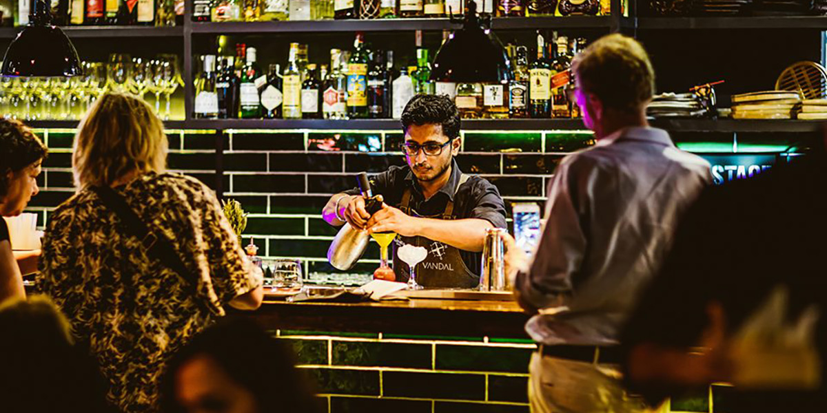 Dirígete a Vandal, un favorito local a la última con una fachada oscura e inquietante que, sin embargo, da paso a un interior que resulta atractivo y acogedor. Ofrece innovadoras tapas de fusión con un auténtico aire de internacionalidad. Imagina, por ejemplo, un menú de ostras ‘bloody mary’ de Francia, bacalao negro asado al carbón de Japón y algodón de azúcar cubierto por caramelo carbonatado, un postre irresistible bautizado con un nombre delicioso, Recuerdos de la infancia.