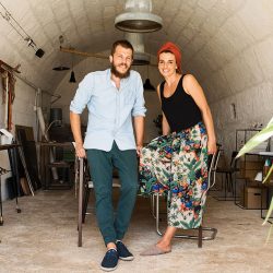 Nicoletta Mantoan (38) y su pareja Alejandro Dumon (33) viven y trabajan en una finca cerca de Sa Ràpita. Nicoletta es una arquitecta italiana, mientras que Alejandro, de raíces francesas/mallorquinas, estudió bellas artes y estatutaria. Bajo el nombre de 2monos, la pareja diseña mobiliario y accesorios domésticos. Sus piezas elaboradas a mano han sido creadas para durar eternamente, en contraposición con el diseño industrial y las producciones en serie. Su último proyecto fue una cocina para una casa urbana de Palma. Construyeron la estructura de hierro ennegrecido y todos los elementos con madera sólida, procedente de una antigua finca.