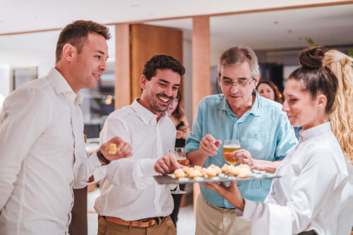 Los invitados disfrutaron de un cóctel de bienvenida al que siguió un exquisito catering de Marc Fosh. Brassclub y la banda de soul mallorquina Inear añadieron melodía y ganas de bailar al evento.
