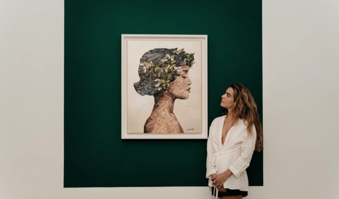 Sus cuadros son de todos los tamaños y su paleta va desde los tonos naturales a los rosas y rojos vibrantes. Pero no hay por qué sentirse intimidado por la elección. “Mis cuadros eligen a sus compradores”, nos tranquiliza con una sonrisa, “simplemente sabes cuándo es el adecuado”. Sus obras son perfectas para quienes están cansados de la ostentación y buscan algo con un poco más de alma para profundizar en la acogida y el equilibrio de su hogar.