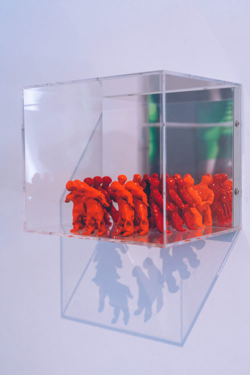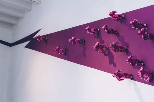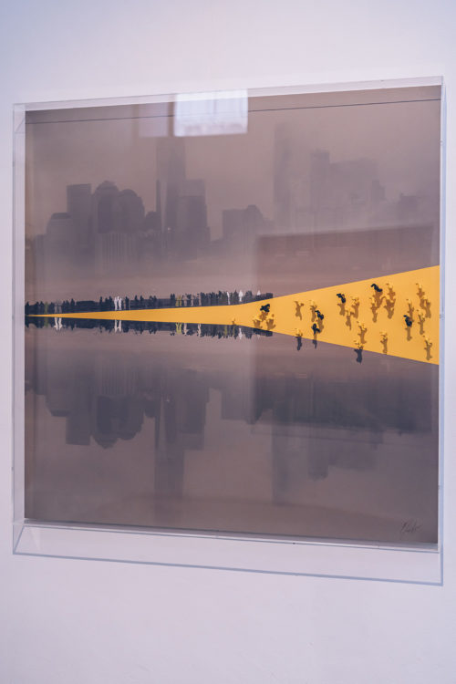 Sus obras de arte crearon una intensa atmósfera donde los invitados reflexionaron sobre la dinámica humana. “Energy Ray” es un análisis del comportamiento humano explorado dentro de los parámetros de un contexto público. Francesca ha creado inteligentemente una serie de obras que reflexionan sobre el papel de los líderes y los seguidores, utilizando las multitudes como protagonista.