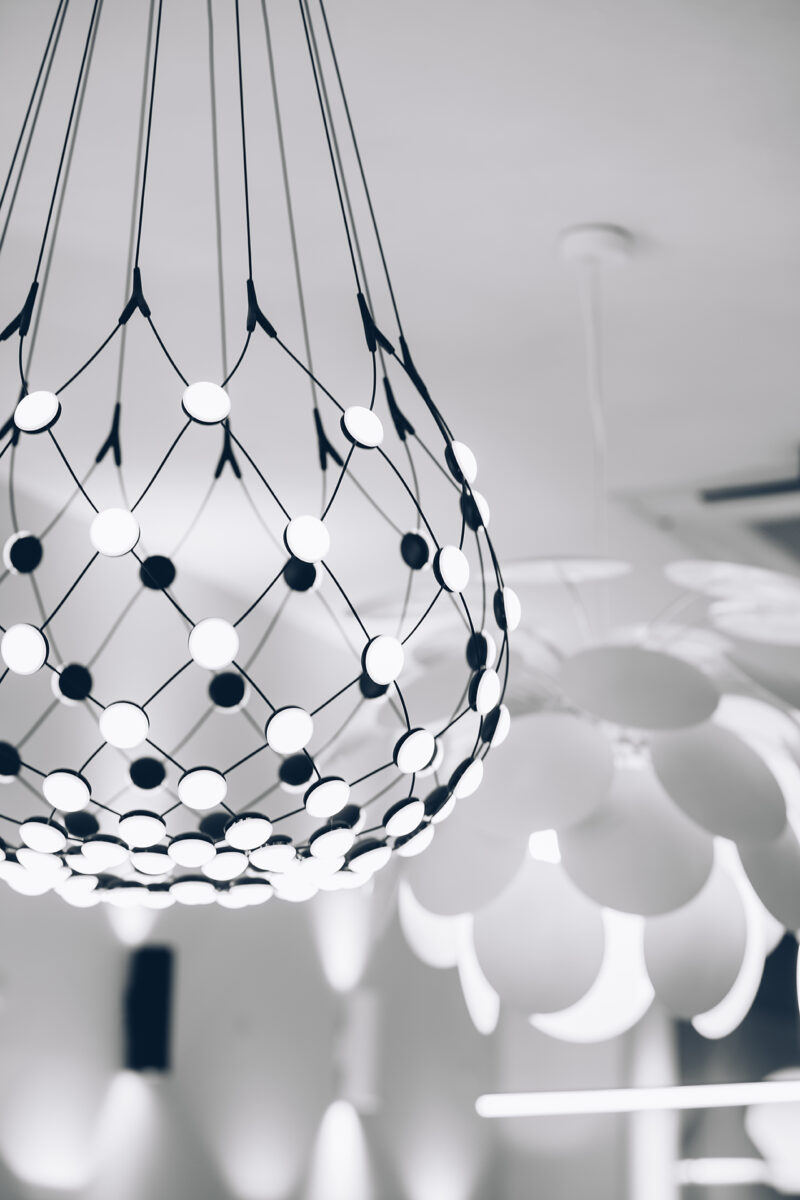 Tomeu ha acumulado una gran experiencia en el sector de la iluminación, que comenzó de joven trabajando en el negocio familiar de instalaciones eléctricas. “Como soy una persona rebelde, dejé el núcleo familiar y me puse a trabajar por mi cuenta”, dice con una sonrisa. Fue ascendiendo hasta llegar a supervisar la creación de un departamento de iluminación en una gran empresa. Sin embargo, la crisis de 2008 y la inminente venta del negocio le llevaron a tomar una decisión que cambió su vida. Para entonces, había descubierto que le interesaba mucho más la iluminación que la instalación. Con dos proveedores de iluminación dispuestos a confiar en él, montó su propio negocio. “Empezamos con dos mesas, dos sillas, dos ordenadores y dos marcas”, dice. El edificio en el que nos encontramos pertenecía a su abuelo y en su día fue un almacén de pieles. Tomeu siente verdadero cariño por el lugar y ha transformado el montacargas en un elemento atractivo y, por supuesto, bellamente iluminado.