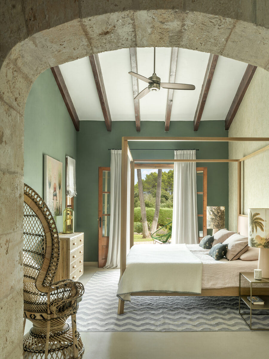 La casa debía estar “despojada de artificios y lujos”, creando ambientes sinceros y sencillos que sirvieran de marco al excepcional paisaje de su entorno de Pollensa. Los arcos de piedra y las vigas de madera oscura, elementos omnipresentes en la arquitectura mallorquina, enmarcan ya cada estancia de la casa y permiten crear espacios acogedores y llenos de vida que invitan a relajarse y disfrutar de los interiores.