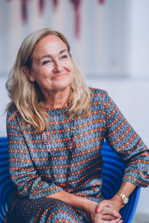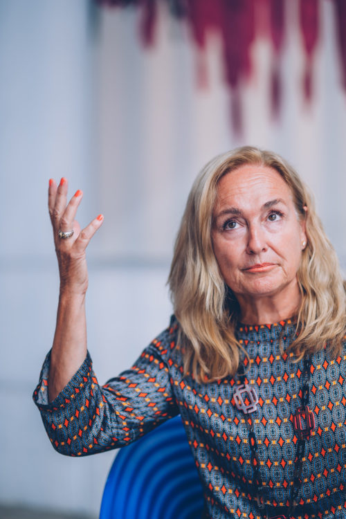 Francesca nos pregunta por la idea de Slow Luxury y enseguida nuestra conversación se centra en el papel de la tecnología en nuestras vidas. Ella suele observar la rápida circulación de noticias y su constante presencia. Recuerda un reciente viaje a China, donde vio un mar de personas conectadas a sus teléfonos, como si el cuerpo humano y el móvil fueran uno. Este nivel de comunicación ha llevado a una proliferación de ruido e información. Francesca señala que, en buena medida, es “gente que no habla de nada”. Con bloques de colores y rostros “sin alma”, su exposición analiza en detalle cómo la masiva información fusiona nuestras identidades, las mezcla y las hace pensar al unísono.