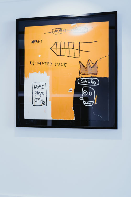 La obra de Basquiat es conocida por sus colores intensos y su expresividad , características del movimiento artístico neoexpresionista. Su amor por los dibujos animados y la naturaleza de su juventud se refleja perfectamente en sus obras.