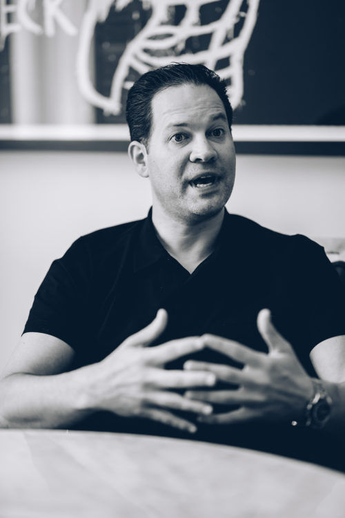 Nos sentamos y Drew se muestra tan expresivo como el arte que lo rodea. Es dinámico y apasionado, rasgos que retrotraen a su anterior carrera en Estados Unidos. Le preguntamos por la elección de las piezas para Gallery Red y responde con una sola palabra: “Instinto”. “En cinco segundos, puedo ver si es una pieza que me gustaría tener”, dice apuntando a varias obras que no dejan indiferente. Saca su móvil y comenta que mantiene contacto con diez nuevos artistas, y no por teléfono o correo electrónico, sino por WhatsApp. “Ésta es una actividad basada en las relaciones… Siempre estoy buscando esa pieza con factor guau”. Hace una pausa antes de continuar. “Compro para la galería como lo hago para mí mismo; solo compro lo que me gustaría tener en mi propia casa”.