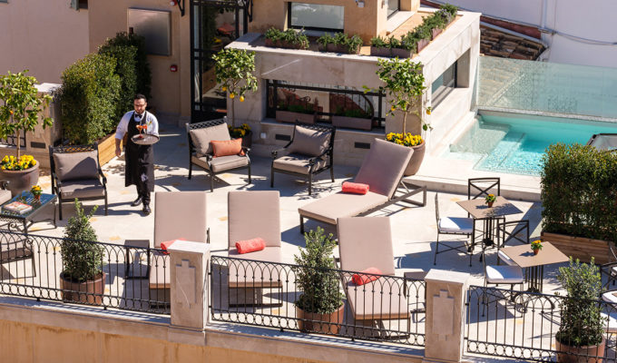 Como persona que se pasa la mayoría del tiempo literalmente en el aire, en un avión, o corriendo de un lado para otro tierra firme, alojándose en hoteles, para mí ha solido significar simplemente un lugar en el que aterrizar antes de un evento o de una reunión. Un lugar en el que darse una ducha y dormir, y quizá disfrutar de un tratamiento de spa. Sin embargo, este año, mi casa de Son Vida ha sido objeto de una épica renovación, así que a menudo mi familia y yo nos hemos visto forzados a escapar del ruido y del polvo acumulado en busca de las comodidades de una casa en hoteles de Mallorca.