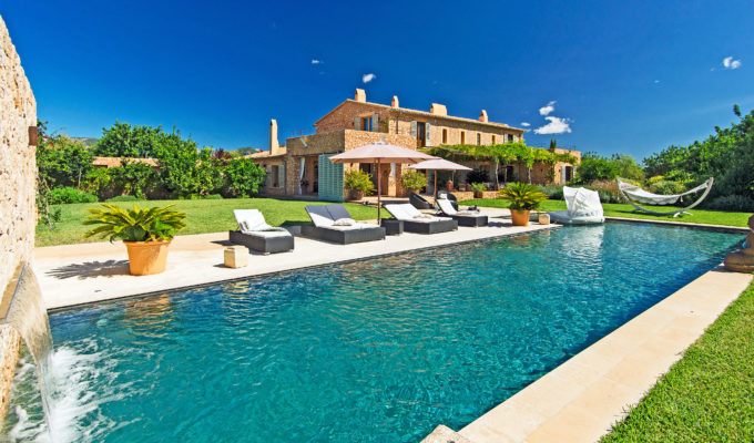 Elegante finca mallorquina con vistas panorámicas, anexos para invitados y piscina privada en la codiciada Pollensa.
