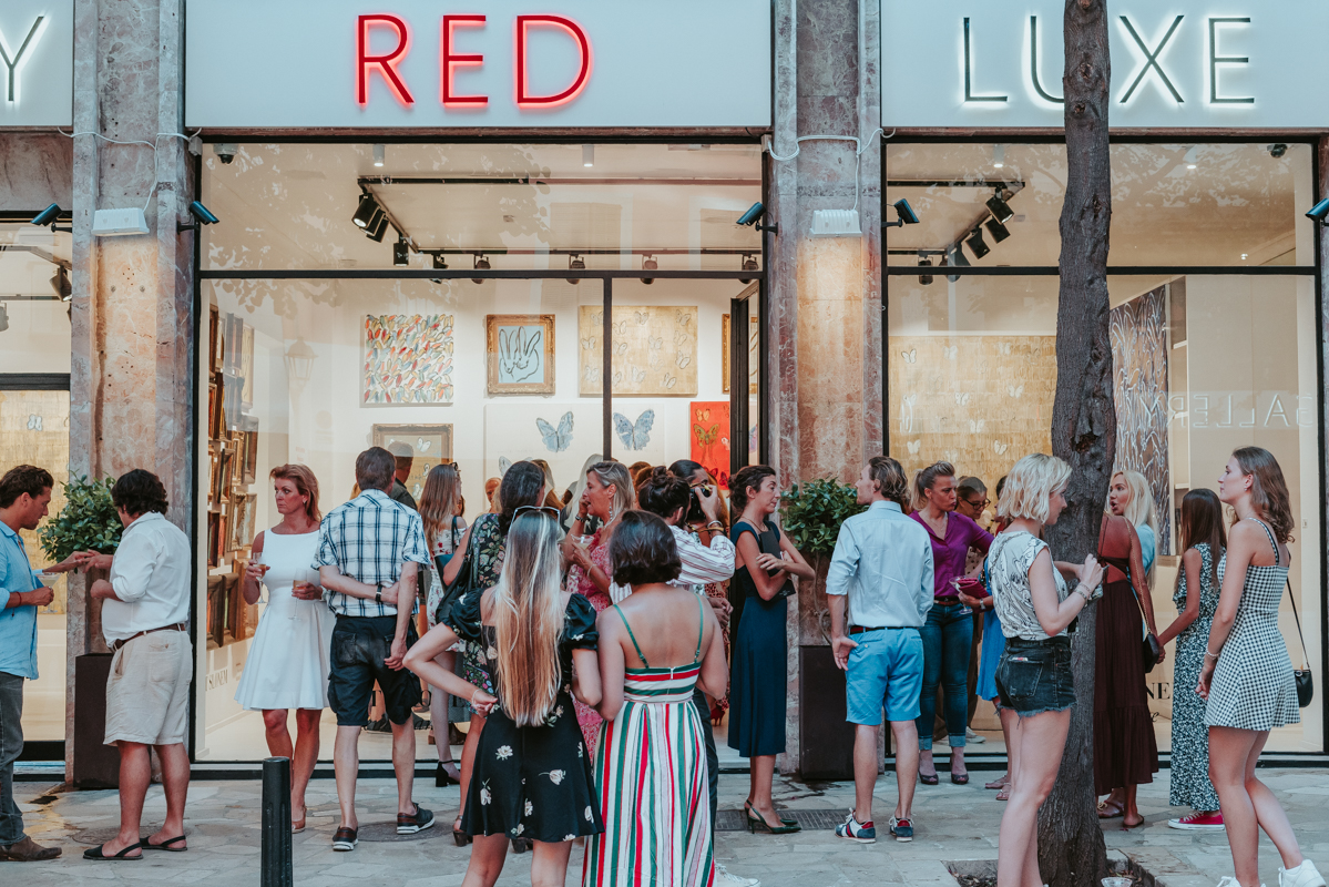 Gallery Red es una de las galerías de arte más exclusivas y modernas de Palma, por lo que fue el lugar perfecto para presentar las obras del artista americano. Tanto el director de Gallery Red, Drew Aaron, como el resto del equipo y los invitados quedaron realmente sorprendidos con las magníficas obras del artista.