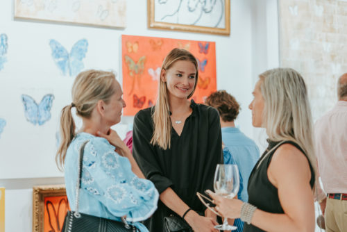 Un ambiente animado y algunos cócteles animaron la tarde, en la que los invitados reflexionaron sobre la colección de Hunt, sobre todo, observando el magnífico uso del color y el tono en todas las obras presentadas.