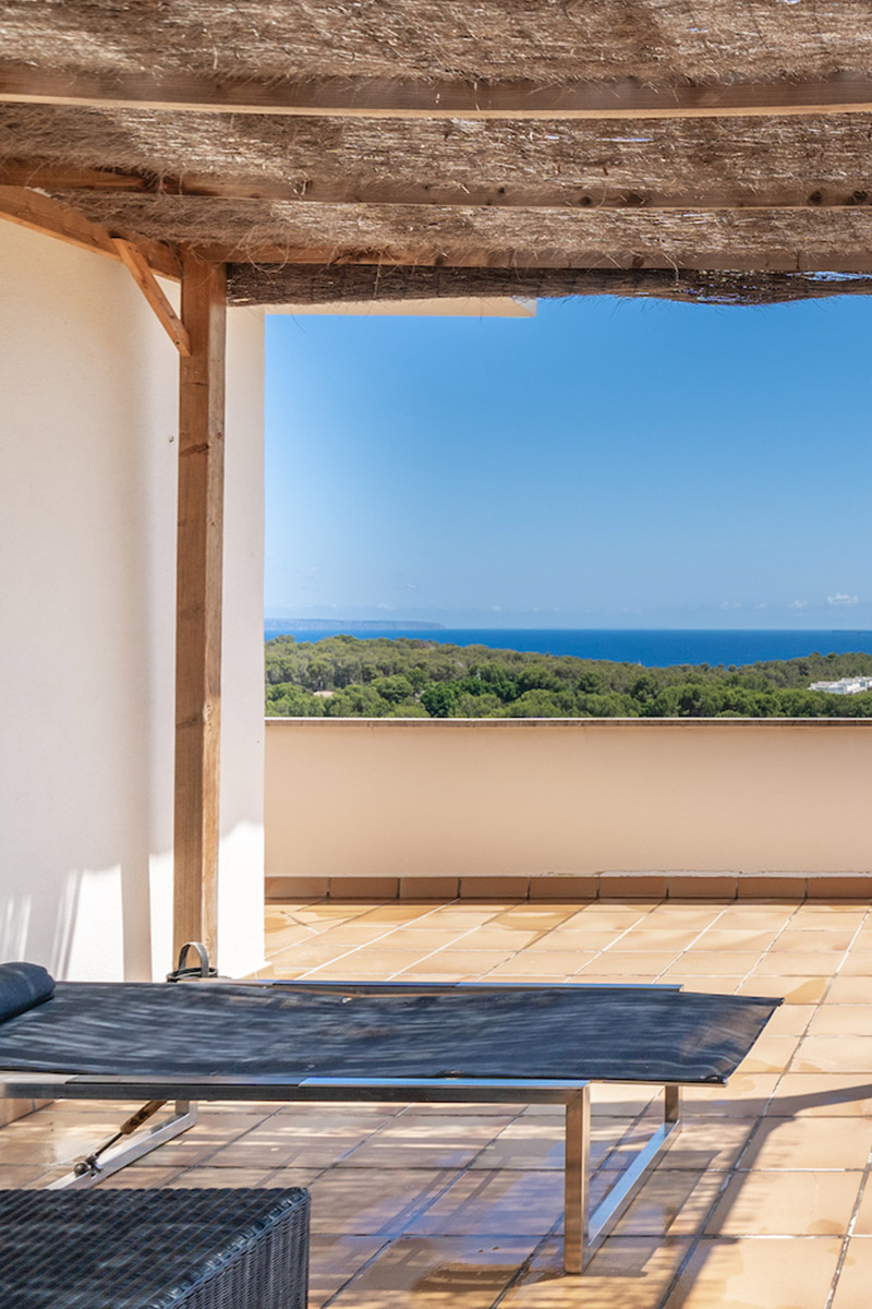 La amplia terraza es ideal para disfrutar de las hermosas vistas panorámicas y del ambiente mediterráneo. Cuando el calor aprieta, la piscina es el lugar ideal para refrescarse.